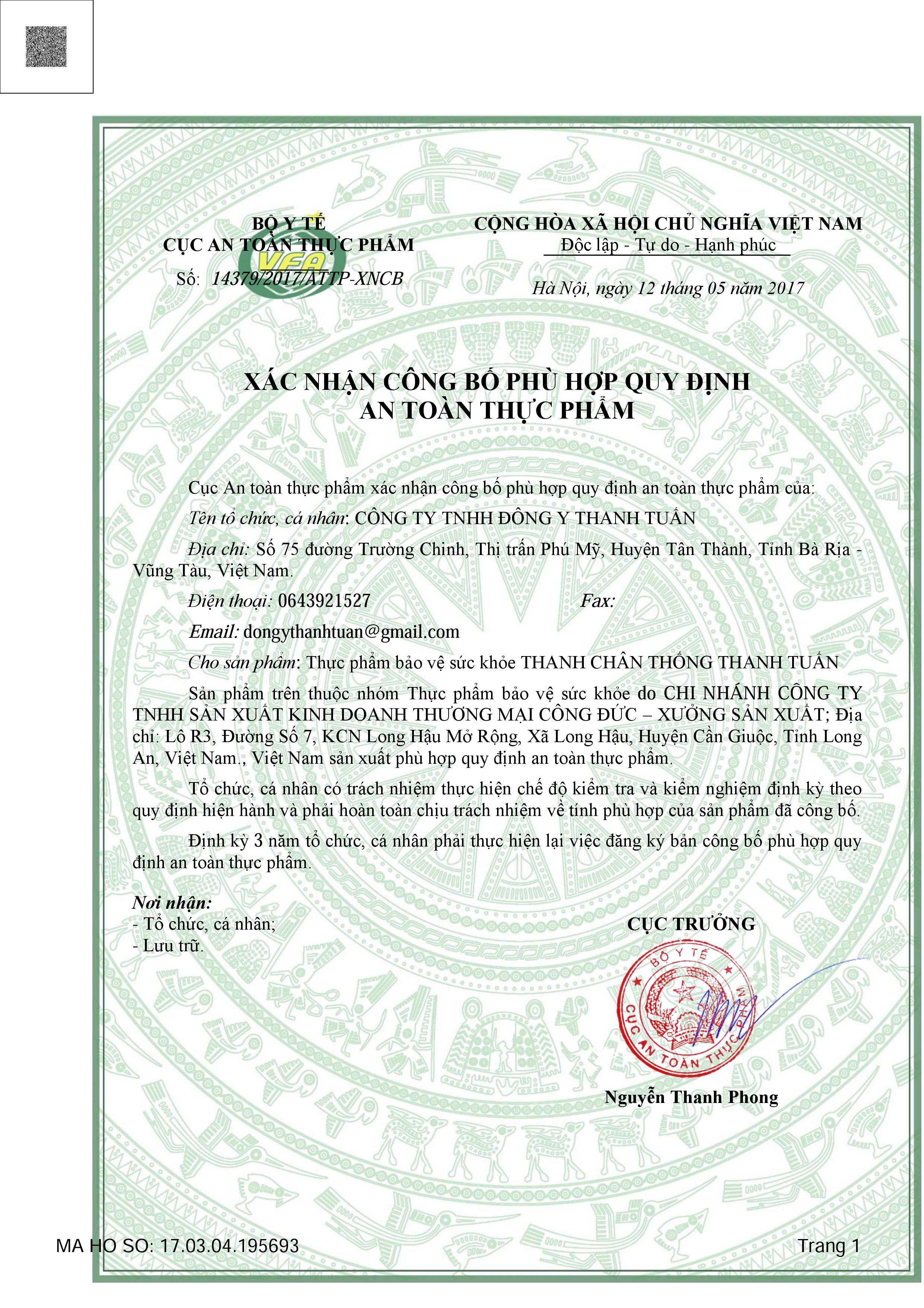 Cảnh Báo: Mọi hành vi sao chép giải thưởng hoặc làm giả giấy đăng ký nhãn hiệu nhằm mục đích trục lợi cho cá nhân hoặc công ty sẽ chịu trách nhiệm trước pháp luật. Quý khách hàng và độc giả nếu phát hiện trường hợp này xin vui lòng thông báo về Đông Y Thanh Tuấn qua số hotline: 0254.3921.527.